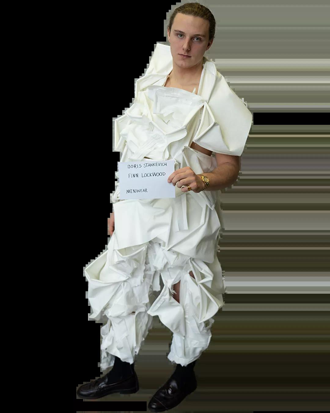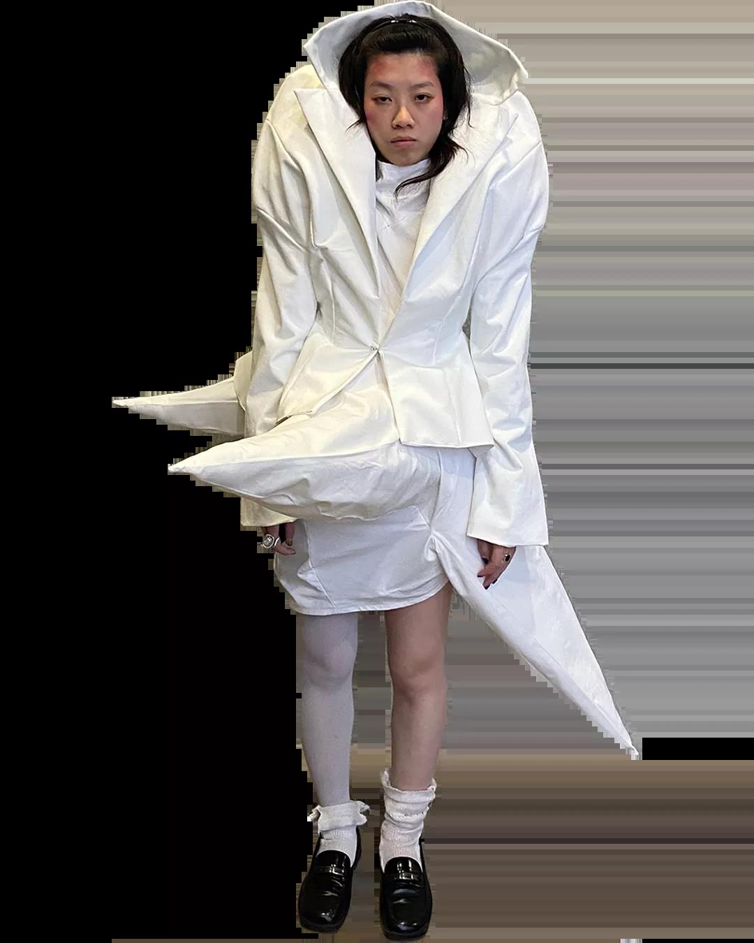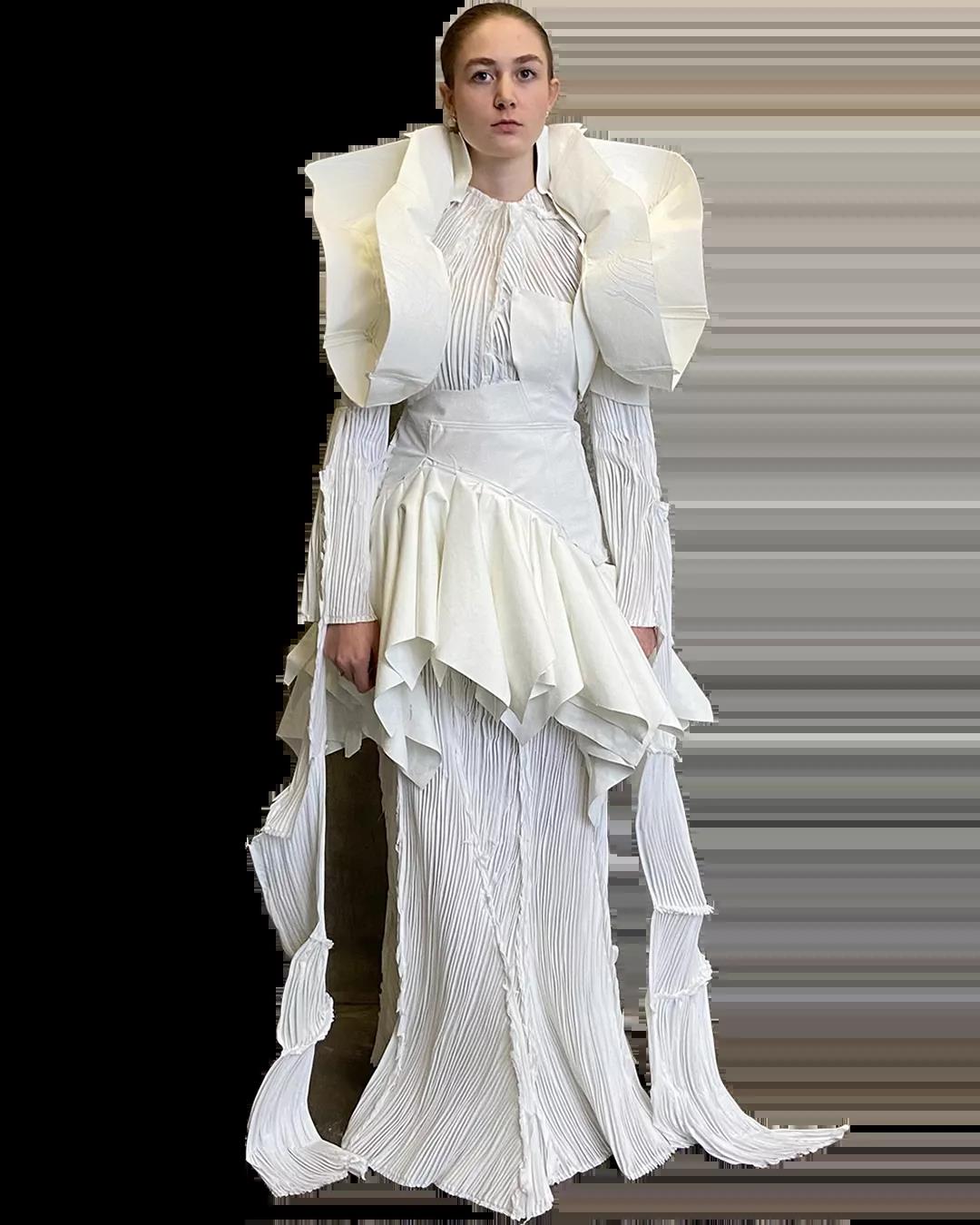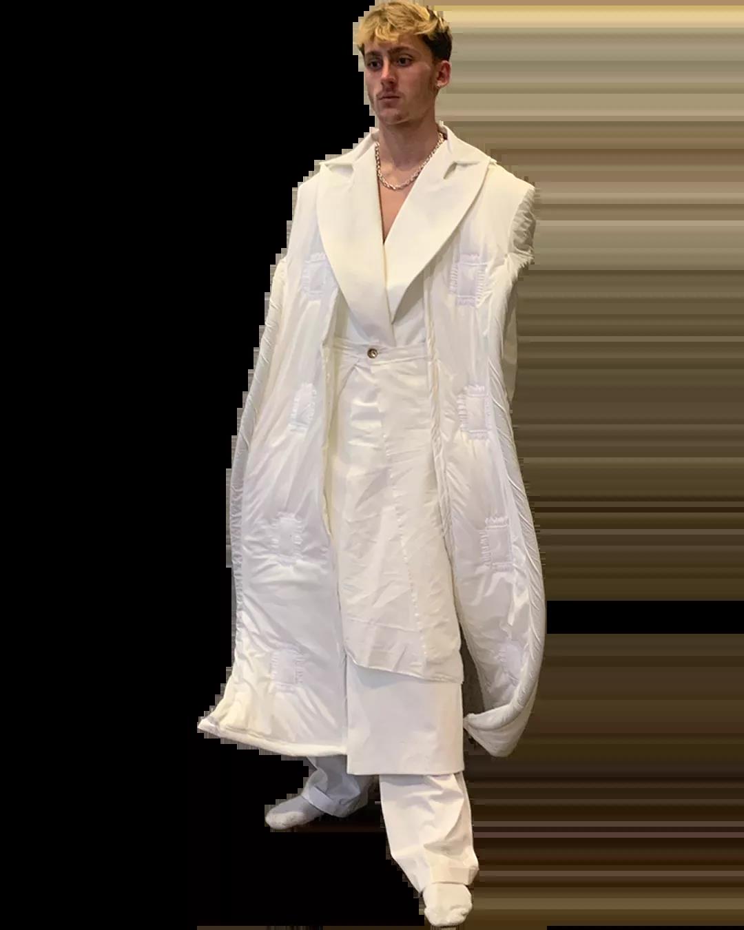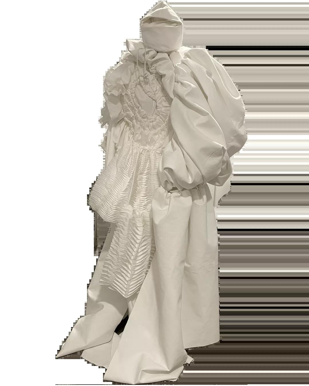 The White Show是所有圣馬丁學生成長的必經之路。作為第一學年課程的一部分,White Show讓學生參與完整實踐研究與設計的過程,掌握包括結構制作、圖案裁剪等技能。當只允許使用單一色彩的面料進行表達時,注意力將集中于面料與廓形的設計。對于設計新人來說,經過這一場挑戰(zhàn),能夠快速檢驗自己的專業(yè)水平,在未來的學習中,更加明確自己的方向,探索時裝設計無限的可能。