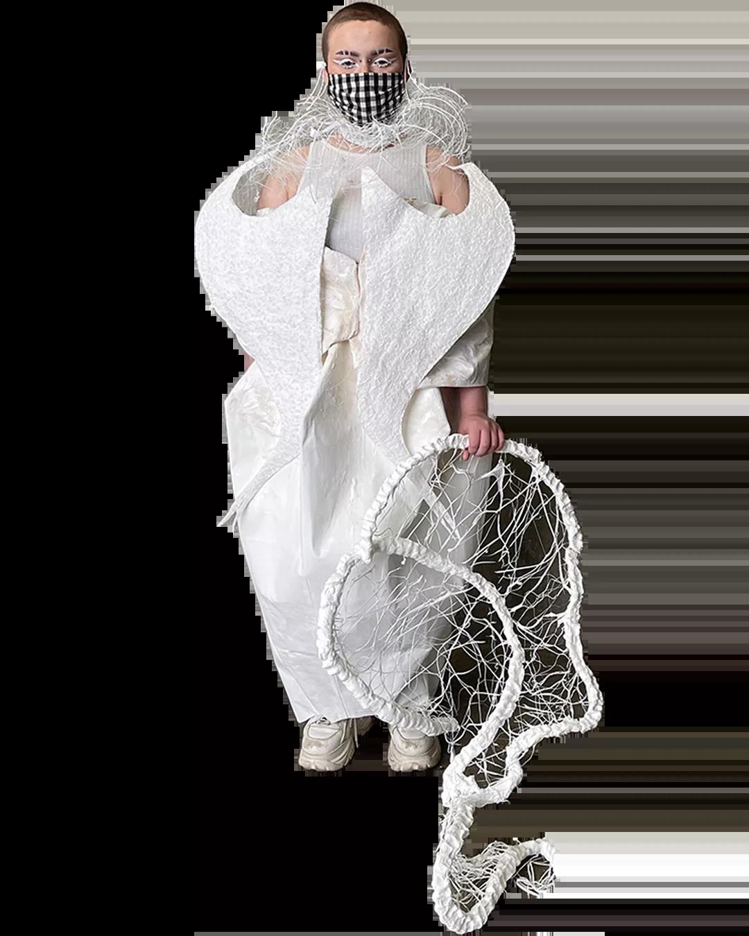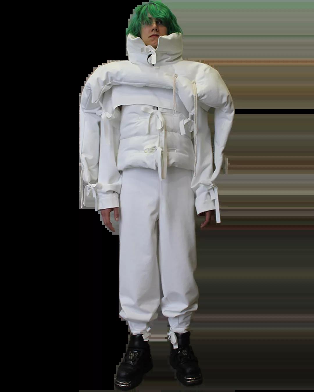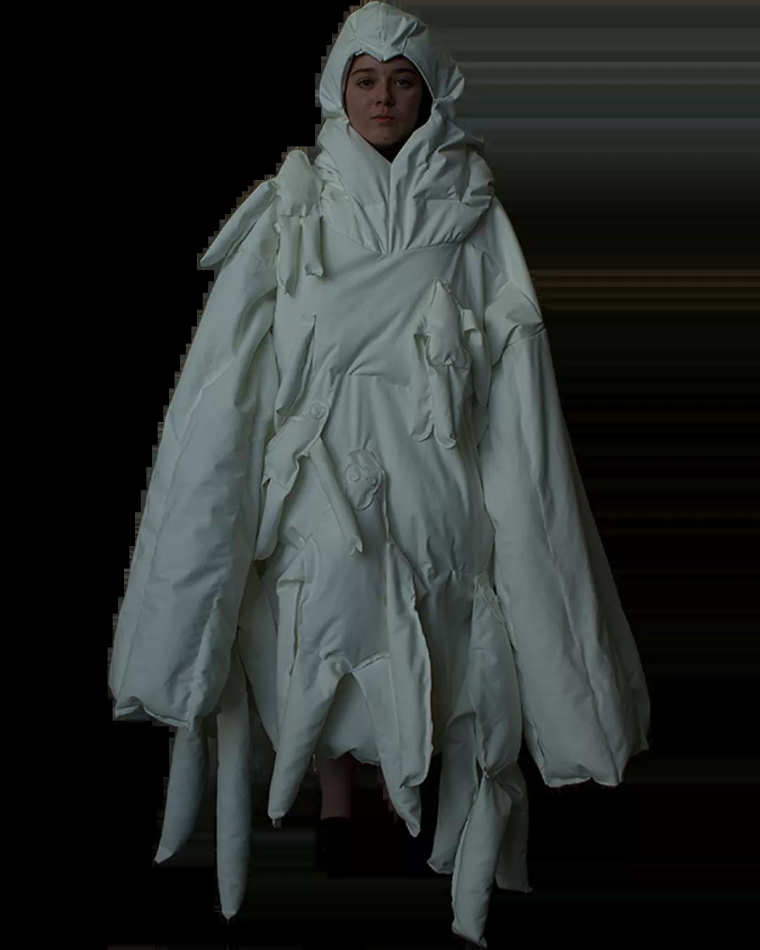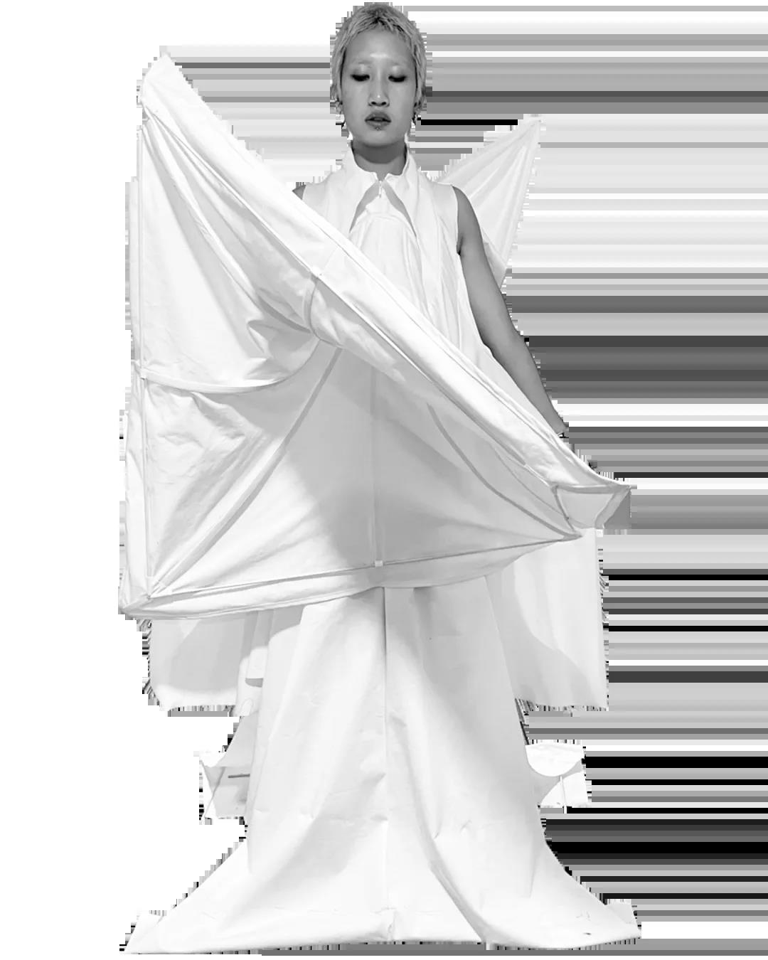The White Show是所有圣馬丁學生成長的必經之路。作為第一學年課程的一部分,White Show讓學生參與完整實踐研究與設計的過程,掌握包括結構制作、圖案裁剪等技能。當只允許使用單一色彩的面料進行表達時,注意力將集中于面料與廓形的設計。對于設計新人來說,經過這一場挑戰(zhàn),能夠快速檢驗自己的專業(yè)水平,在未來的學習中,更加明確自己的方向,探索時裝設計無限的可能。