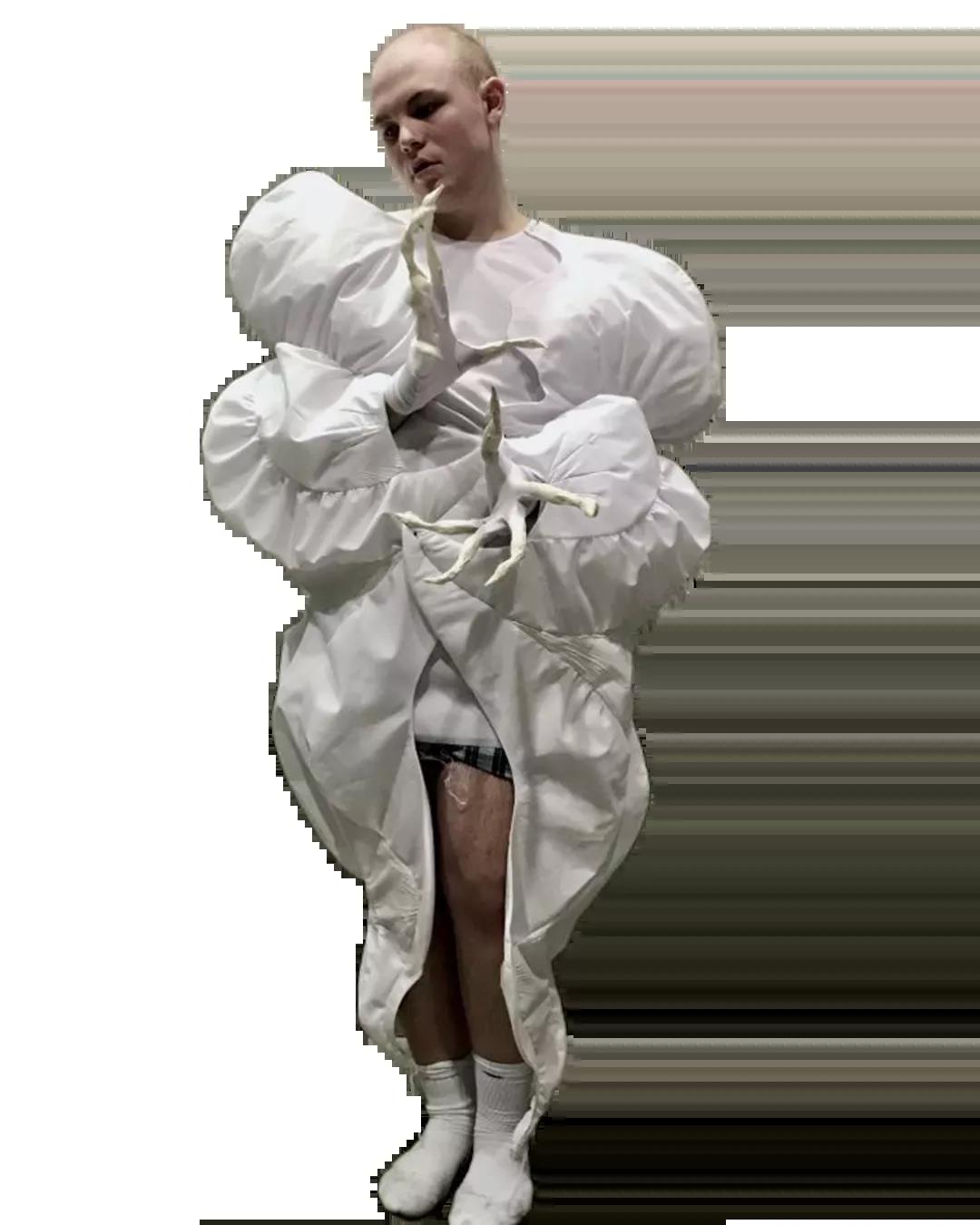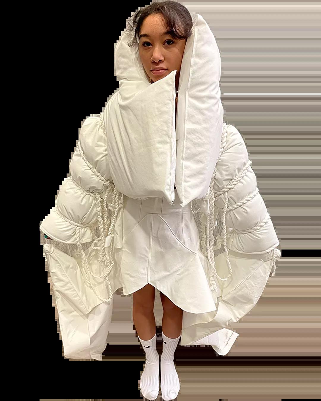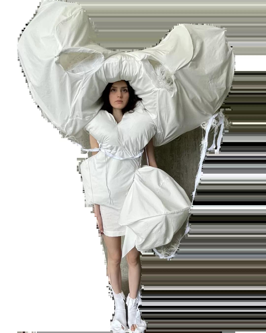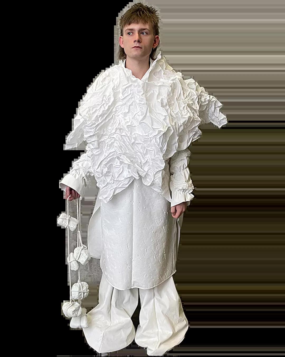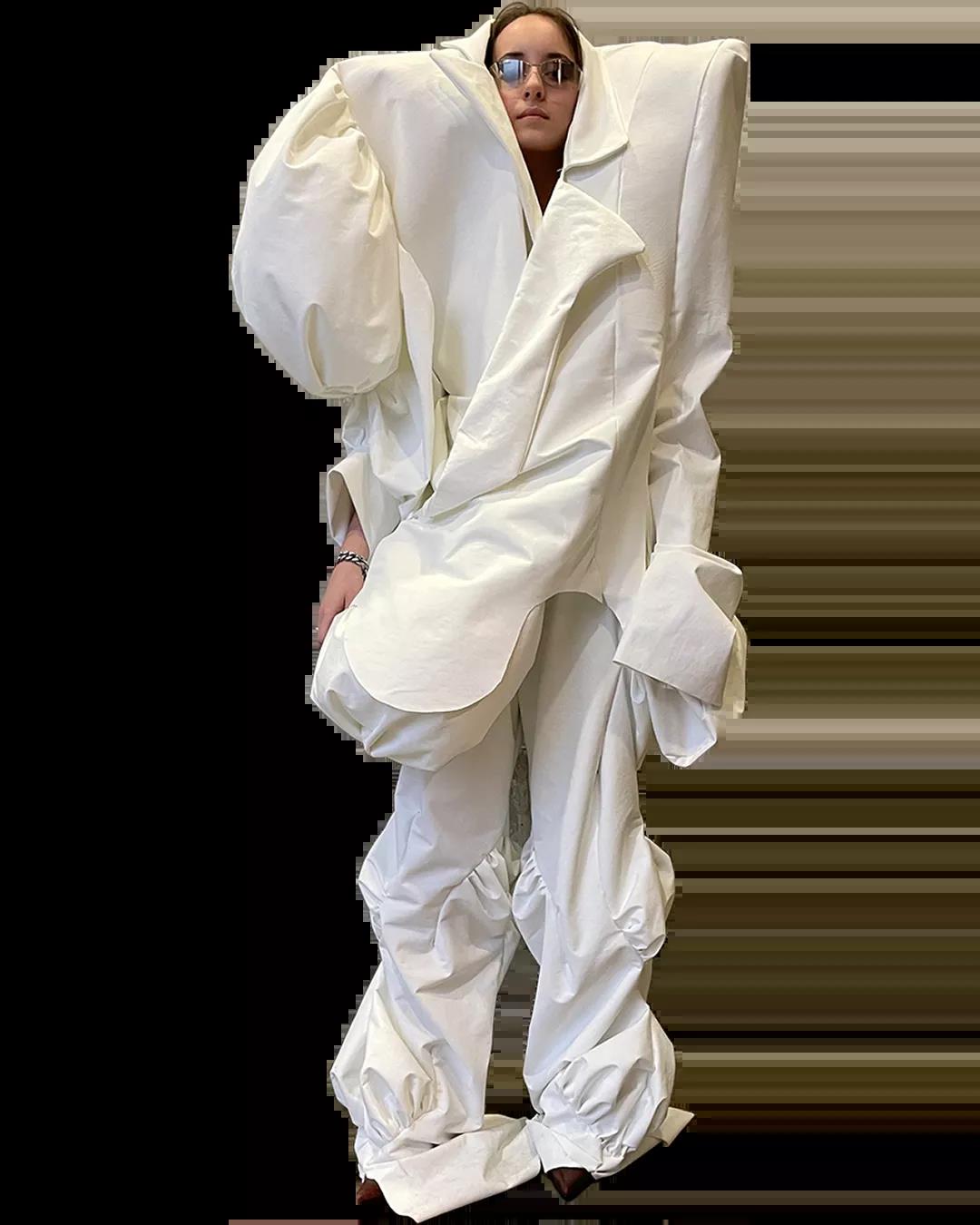 The White Show是所有圣馬丁學生成長的必經之路。作為第一學年課程的一部分,White Show讓學生參與完整實踐研究與設計的過程,掌握包括結構制作、圖案裁剪等技能。當只允許使用單一色彩的面料進行表達時,注意力將集中于面料與廓形的設計。對于設計新人來說,經過這一場挑戰(zhàn),能夠快速檢驗自己的專業(yè)水平,在未來的學習中,更加明確自己的方向,探索時裝設計無限的可能。