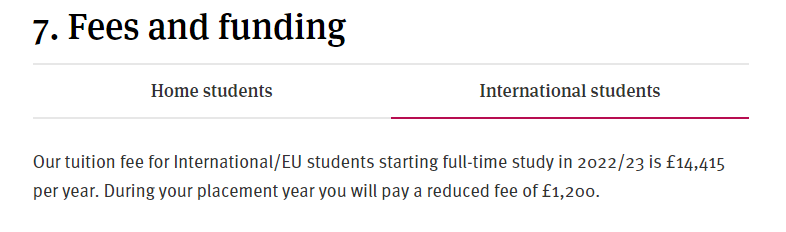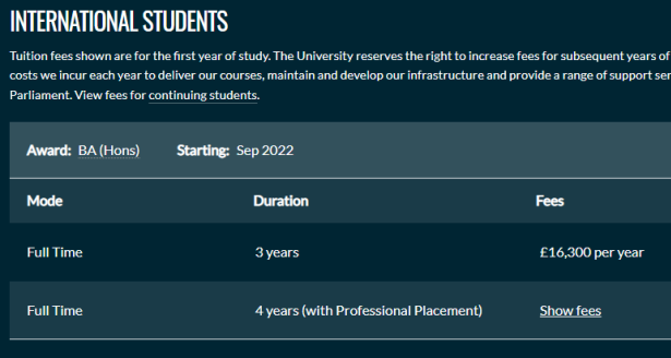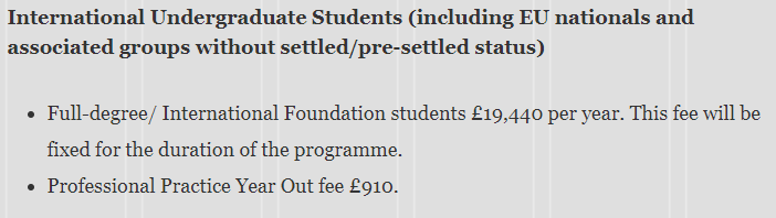 學(xué)費(fèi) ≈英鎊19,440/年-英鎊29,340/年