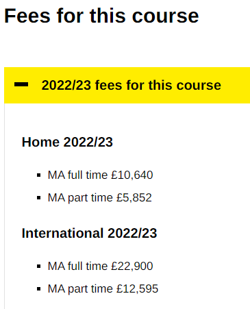 兩年制課程:英鎊20,520/年,共英鎊41,040