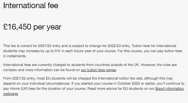 學(xué)費(fèi) ≈英鎊16,450/年-英鎊25,880/年