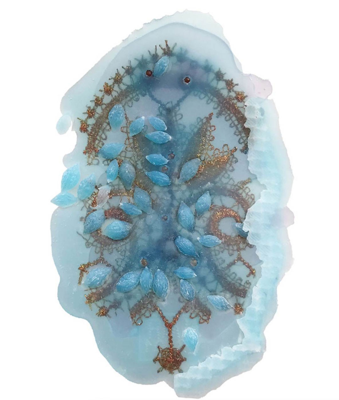 Seulgi Kwon 1983年出生于首爾,2010年獲得韓國(guó)首爾國(guó)立大學(xué)MFA學(xué)位,主攻金屬制品和珠寶首飾專業(yè)。她的靈感來(lái)源于微生物生長(zhǎng)變化的過(guò)程,將硅膠塑形成像玻璃一樣的形狀,同時(shí)混合線和顏料。