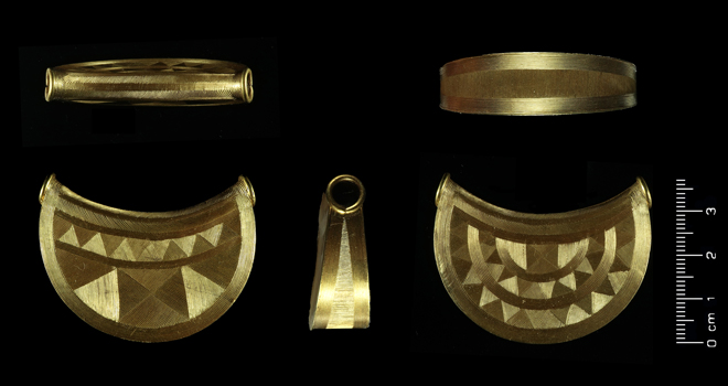現(xiàn)存于大英博物館的這一件吊墜,是歐洲青銅時代黃金作品的杰作,它證明了太陽在這一時期人們的信仰和宇宙觀中的重要性。