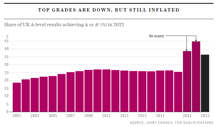2022 夏季A-Level考試都已放榜,今年A-Level考試人次突破78萬,刷新近五年的紀(jì)錄,再創(chuàng)新高!而英國考試局官方也增加了今年評(píng)分標(biāo)準(zhǔn)的嚴(yán)格程度,僅36.4%的學(xué)生獲得A*或A,這一比例跟去年創(chuàng)歷史新高的44.8%相比,有所下降。今年共有近42.6萬英國學(xué)生獲大學(xué)學(xué)位課程錄取,錄取人數(shù)較去年跌2%。