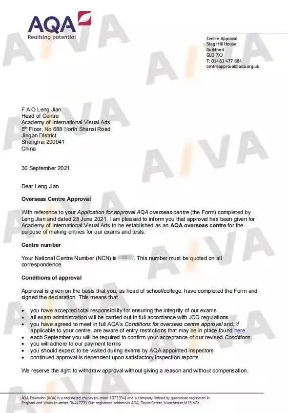 AIVA獲AQA及牛津AQA官方授權(quán)證書