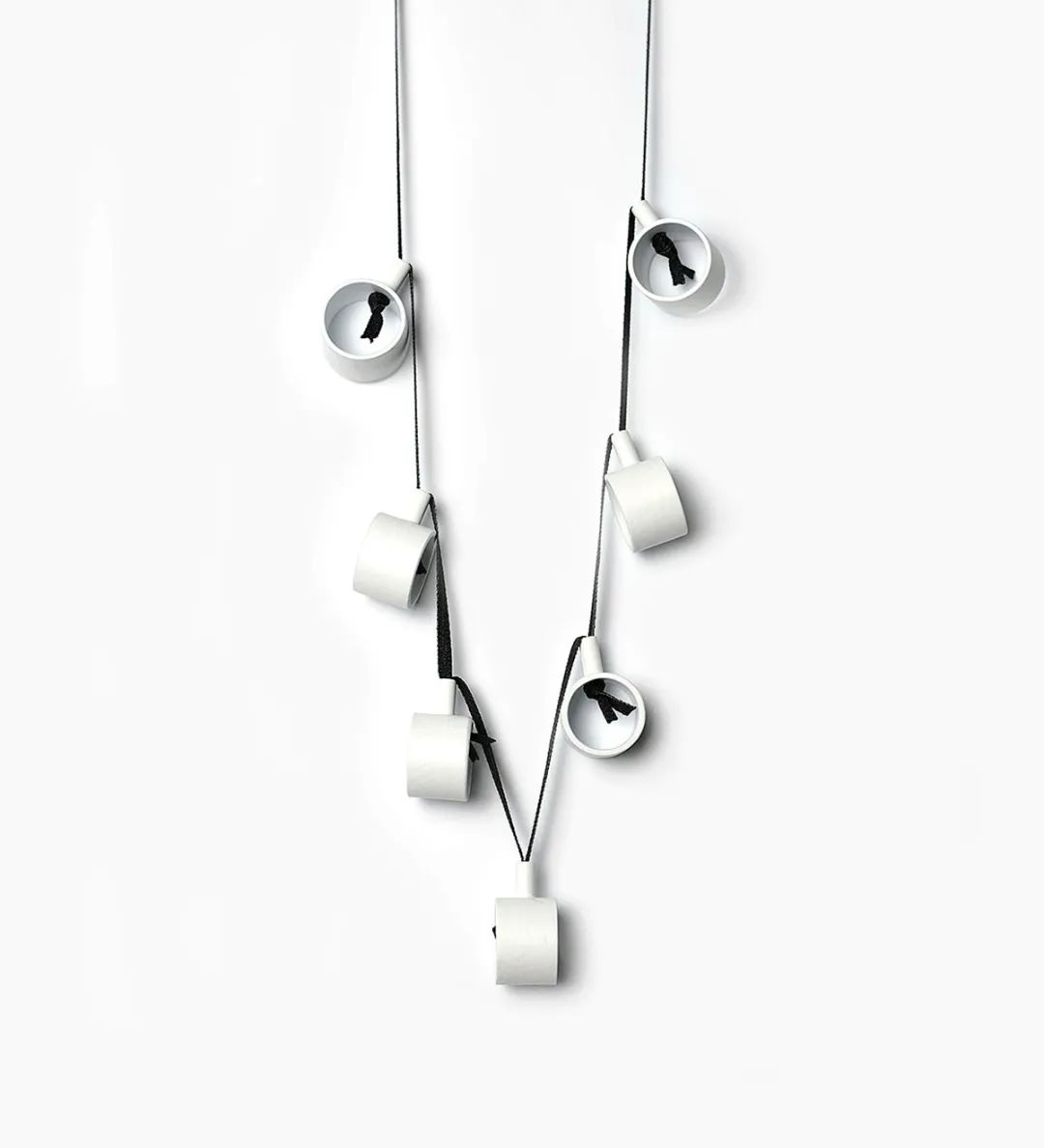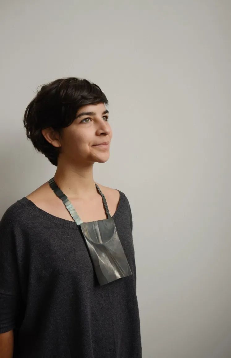 荷蘭首飾藝術(shù)家 Annelies Planteydt 的作品通過線條、填充、形狀來反映日常生活的組織或結(jié)構(gòu)。這些作品可以在不同的階段進(jìn)行觀看——首先是一幅幾何形狀的繪畫。第二階段發(fā)生在拿起它時(shí),從表面觀察并以半流體形式塌陷時(shí),繪畫的順序被打亂了,但運(yùn)動(dòng)中有一個(gè)美麗的新形態(tài)。第三,被佩戴時(shí),佩戴者可以重新定位項(xiàng)鏈和結(jié)構(gòu) - 繪圖階段引用的細(xì)節(jié)是模糊的,但永遠(yuǎn)不會(huì)消失在視線或腦海中。