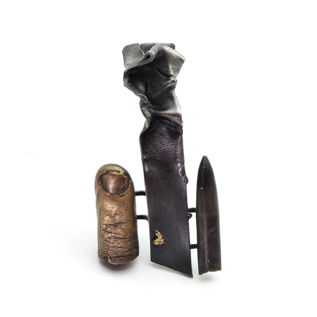 Philip Sajet 是一位從不停止創(chuàng)造驚喜的荷蘭珠寶人,他的作品涵蓋了從經(jīng)典到世俗的廣泛主題和風(fēng)格,Sajet 將寶石鑲嵌在精致的金制品中,同時(shí)激進(jìn)地在另一件中使用玻璃碎片。標(biāo)志性的寶石輪廓在 Sajet 的作品中很突出,以大膽、夸張的形式,由黑色金屬制成或從原石切割而成,在構(gòu)圖上引用了中世紀(jì)的監(jiān)獄限制。這是一個(gè)經(jīng)常被重新審視的形象,但總是有新的效果。Sajet 選擇用金屬來描繪可識(shí)別的身體部位,例如耳朵、鼻子和嘴唇。名為“Wedding Night”的NSFW是本次展覽的特色。很難用一個(gè)詞來定義 Sajet 的風(fēng)格。他近 40 年的創(chuàng)作是如此龐大和多樣化......