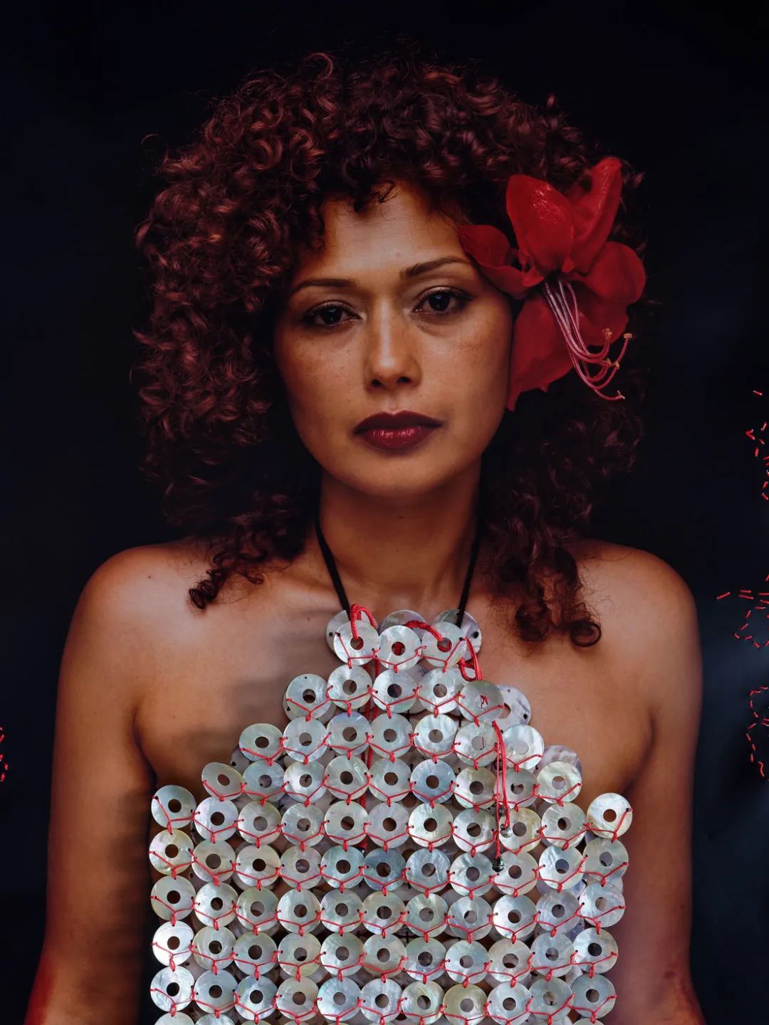 Sofia Tekela-Smith 于 2004 年首次展出“Brown Eyes Blue”。該系列以大型照片和一系列珍珠貝殼項(xiàng)鏈為特色,使用攝影作為一種手段來展示首飾。