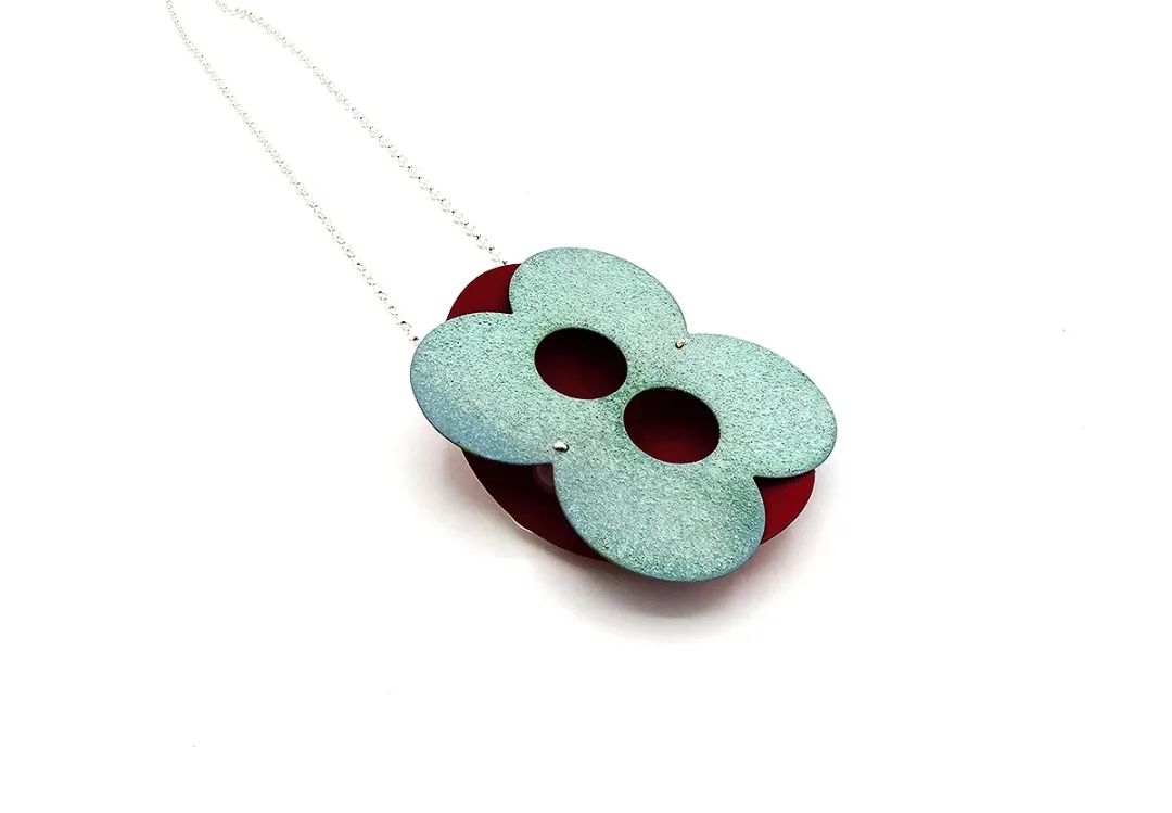 通過添加簡單的繩索或別針,Yumiko Matsunaga 將大理石作品變成珍貴的項(xiàng)鏈或胸針。展覽的主題是真實(shí)的顏色,源于Yumiko Matsunaga 對色彩與情緒之間聯(lián)系的探索,或者說感受的色彩與人類的內(nèi)在心理之間的聯(lián)系。她說:“情緒包含現(xiàn)在,但通?;谶^去的各種經(jīng)歷?,m瑯技術(shù)的色彩應(yīng)用讓我想起了這一點(diǎn),這種技術(shù)是通過各種層次的疊加而產(chǎn)生的……我想創(chuàng)造首飾和物品,通過他們的色彩感喚起觀眾和佩戴者的記憶和情感?!?/p>
