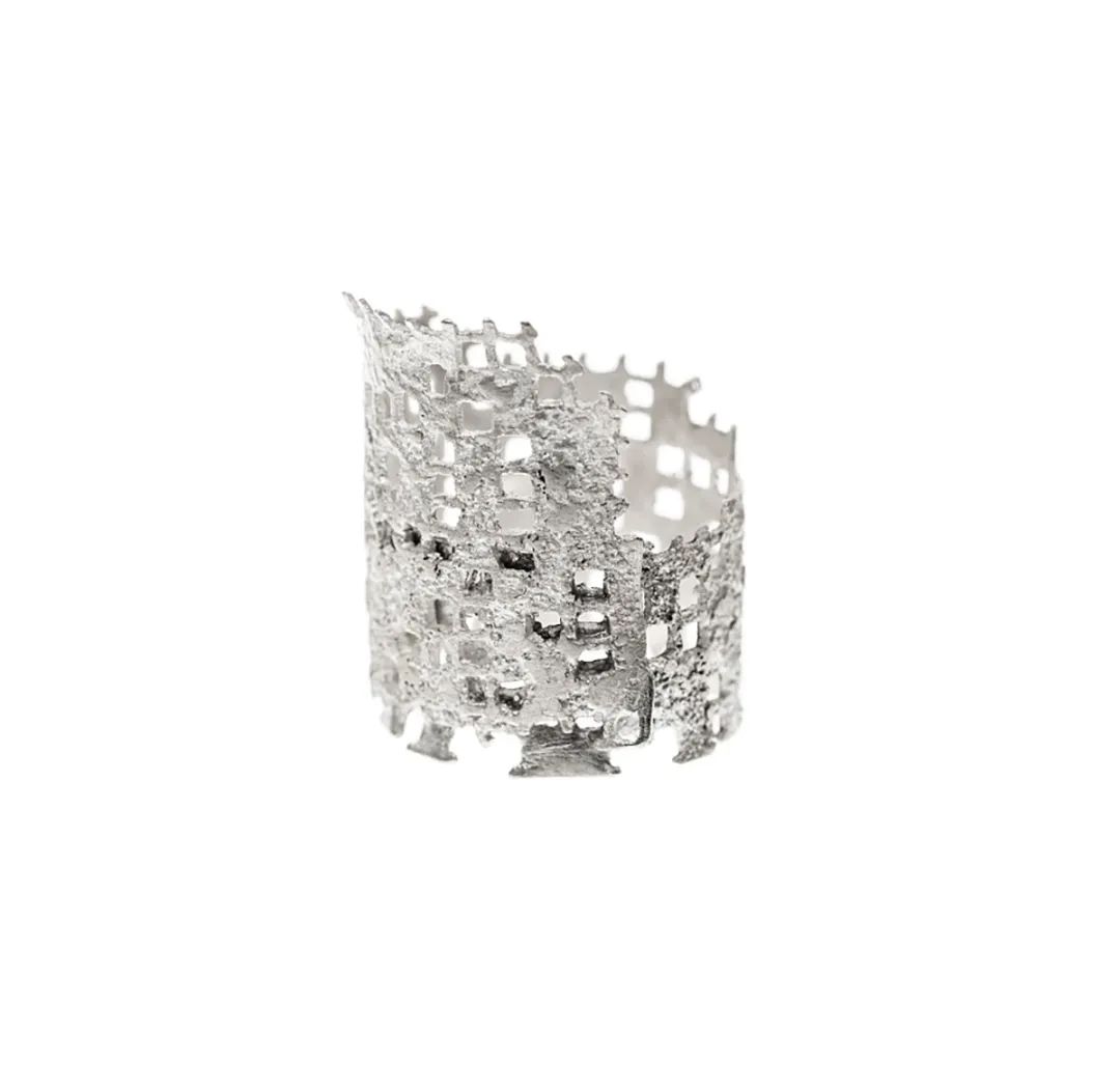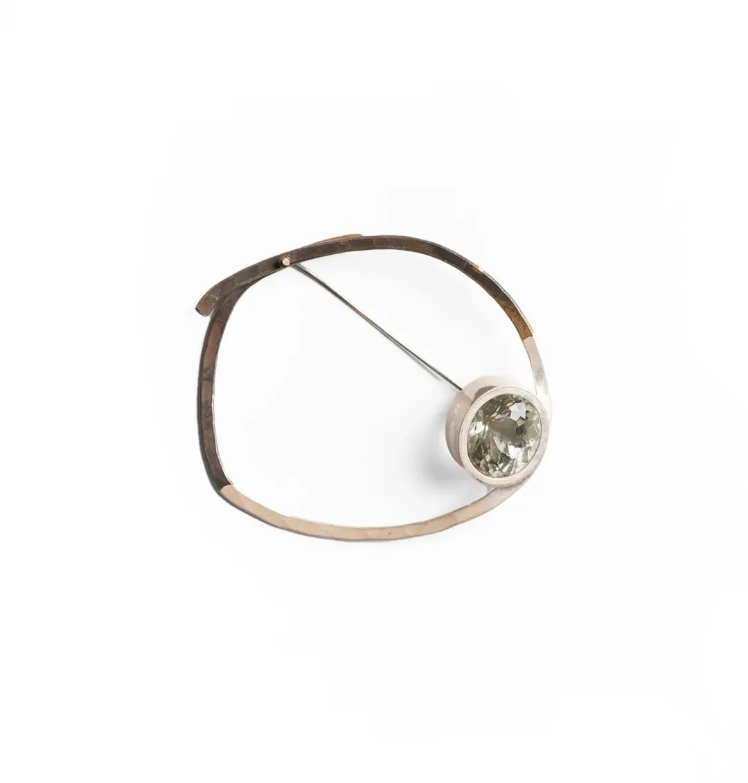 無論靈感是來源于風(fēng)景,還是建筑,或兩者兼而有之,金屬匠 Eleanor Moty 創(chuàng)造出的獨特首飾,詩意地圍繞著佩戴者和觀眾。Moty 在 1960 年代和 1970 年代憑借在裝飾中使用了尖端的制造技術(shù),例如電鍍和光刻,首次獲得認可。在過去幾十年中,她將重點轉(zhuǎn)向在作品中加入寶石,她創(chuàng)作的大型胸針體現(xiàn)了與石英石“線性圖像”的對話。