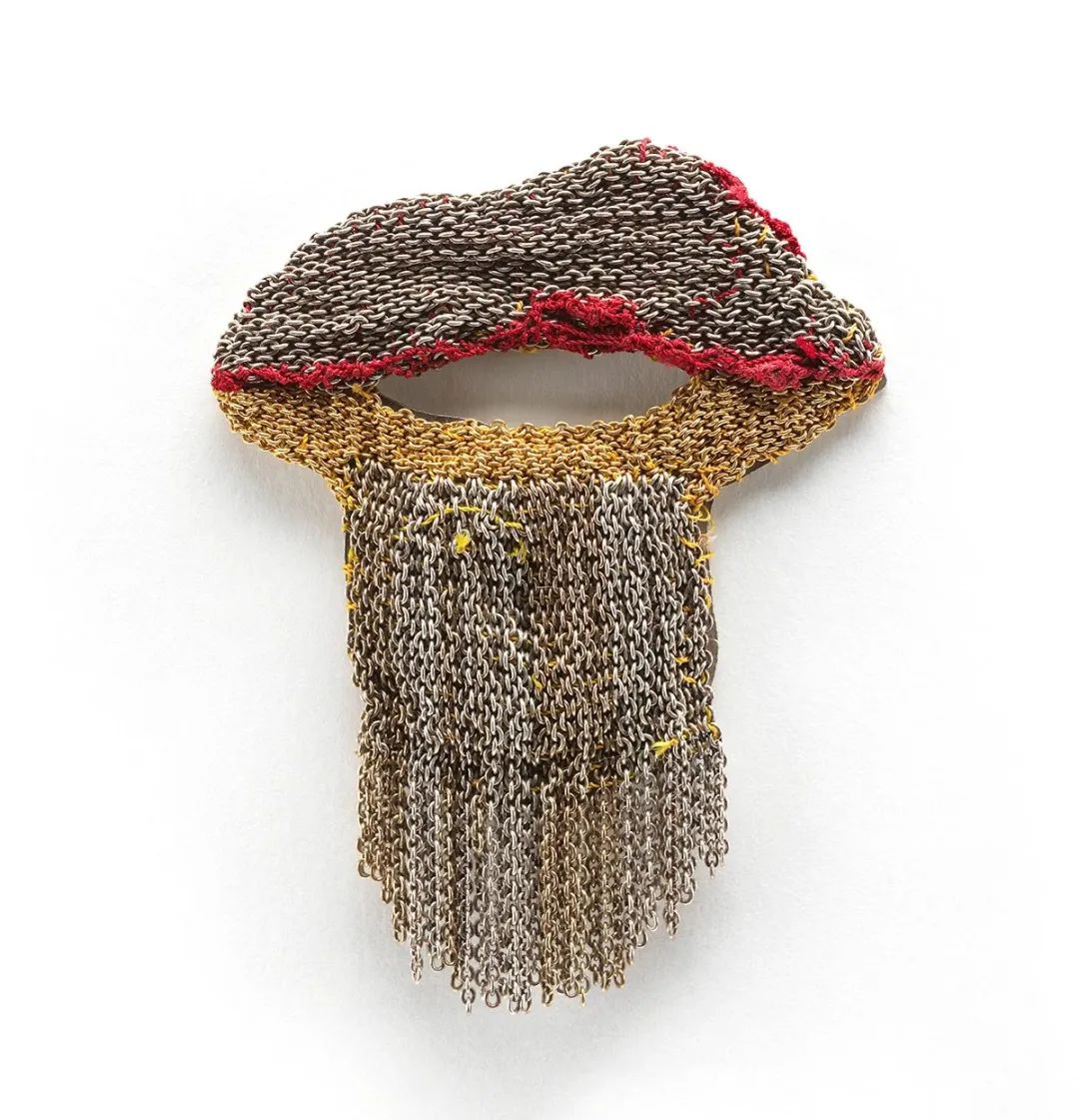 Kath Inglis想通過價值觀的視角調(diào)查南澳大利亞州植物標本館的海藻(海藻)收藏,從而將她的珠寶實踐與這個問題聯(lián)系起來。Kath Inglis說:“通過顯微鏡觀察海藻的干燥標本,我經(jīng)常將它們有趣的表面與我熟悉的塑料材料聯(lián)系起來——保鮮膜、棒棒糖棒、玻璃紙、釣魚線、裝橙子的網(wǎng)袋等。這些塑料制品中有許多都是通常在一次使用后就被丟棄,并決定將這些新材料編織到我的工作室探索中?!?/p>