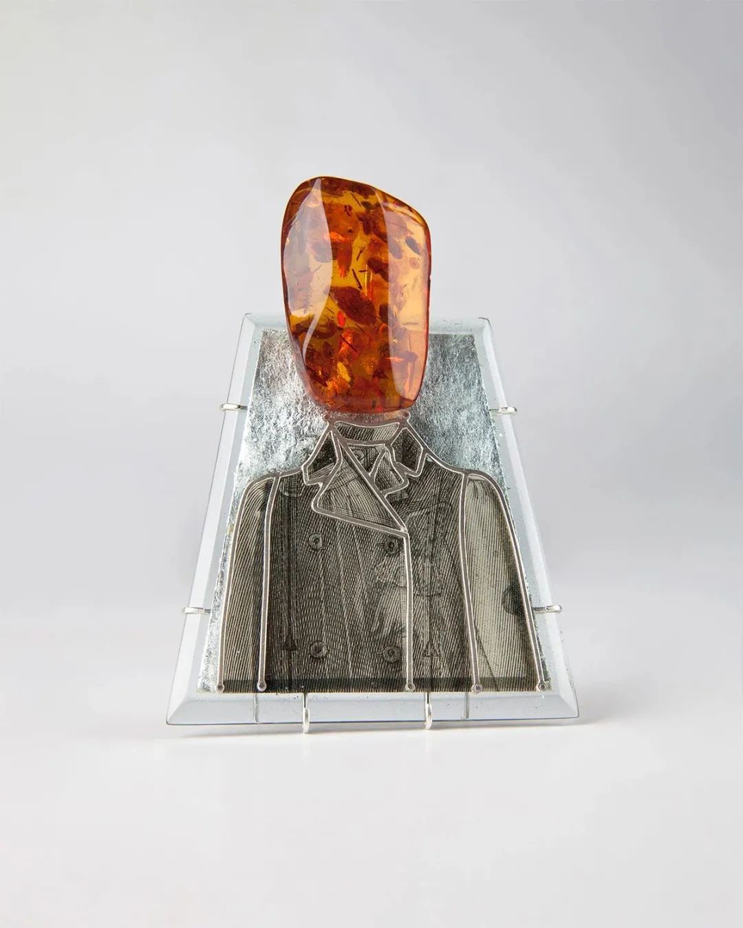 從本質(zhì)上講,Moty 精心制作且耗時的過程始于尋找合適的石頭——石匠已經(jīng)對其進行了改造——然后從那里開始“建造”。藝術(shù)家參與到選擇石頭的色調(diào)、形狀和特征。與其他形式的首飾相比,她更喜歡胸針,她說:“胸針不需要佩戴就可以完整……不必將其貼合身體……我可以專注于雕塑方面。”