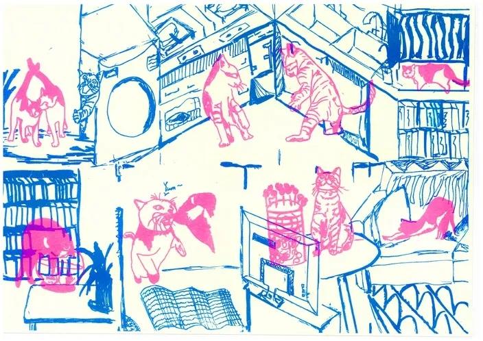 Risograph最大的吸引力是顏色和網(wǎng)點質(zhì)感,當(dāng)印刷多種顏色時,由于不好把握套色的對位準(zhǔn)確性,印刷出來的作品反而常常帶來意想不到的驚喜,這使得Risograph成為了屏幕藝術(shù)家們的心頭愛。