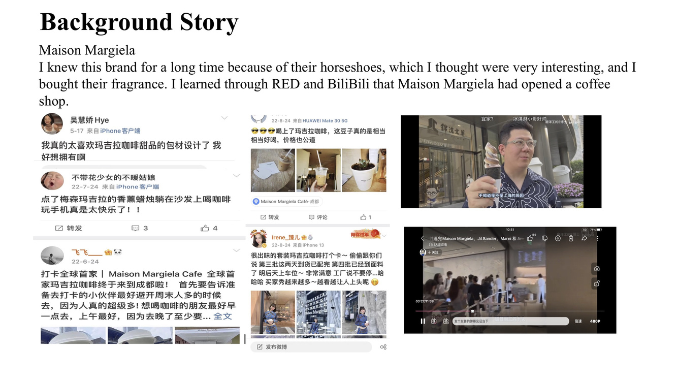 Over the past year while studying luxury brand management, I have undertaken four projects: "Maison Margiela Café", "Survey of Young Luxury Goods Consumers", "Jo Malone Brand Analysis & Environmental Scent", and "Consumption Study of Shanghai's Second-hand Luxury Goods Market". These studies have deepened my understanding of the narratives behind my favorite brands, their operations, and the link between current consumer phenomena and related industries.