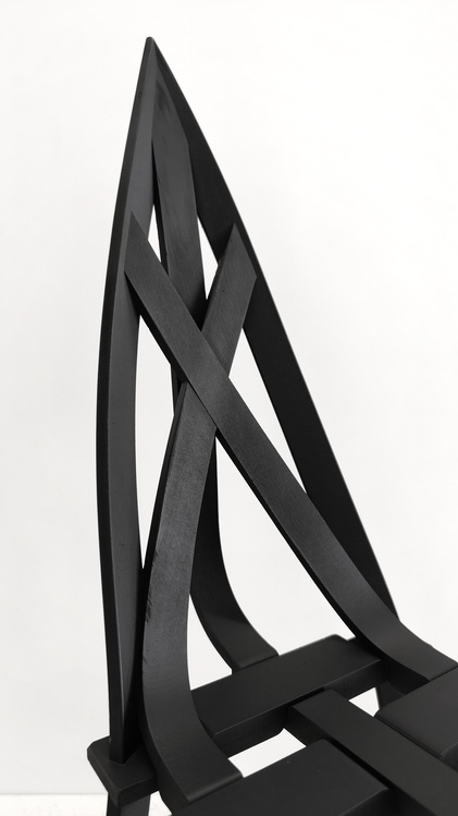 在另一件設(shè)計作品《AIX椅》中,設(shè)計的側(cè)重是在表達(dá)我的個人審美以及設(shè)計風(fēng)格。這把椅子尖銳,線條簡潔,而且結(jié)構(gòu)并不復(fù)雜,只由幾種簡單的零件組成。同時這把椅子也包含了我對現(xiàn)代椅子及中西設(shè)計的理解。