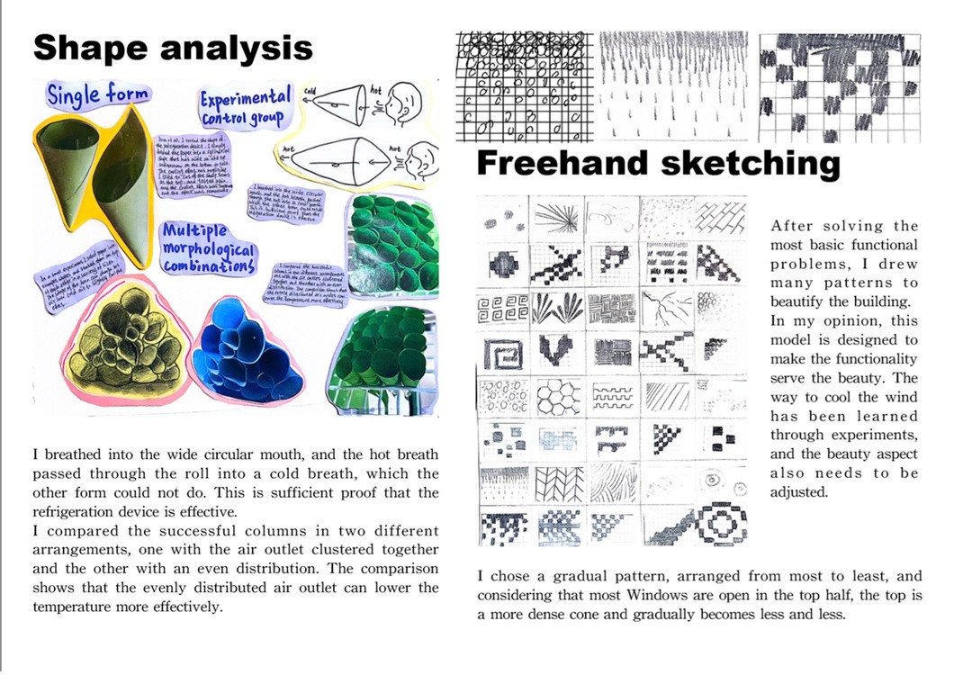 《移動(dòng)建筑》是最后一個(gè)完成的設(shè)計(jì)項(xiàng)目,第一次從為建筑提供的功能性組件,想要為建筑空間設(shè)計(jì)新性通風(fēng)降溫系統(tǒng)。在有強(qiáng)大功能的同時(shí),還希望該部分設(shè)計(jì)能夠?yàn)榻ㄖ?lái)造型的美感。該裝置是安置在通風(fēng)窗口,利用若干大小不一的號(hào)角結(jié)構(gòu)使吹過(guò)的自然風(fēng)得以快速降溫,裝置整體造型也極富動(dòng)感。