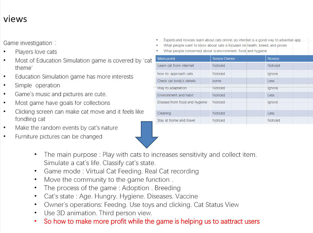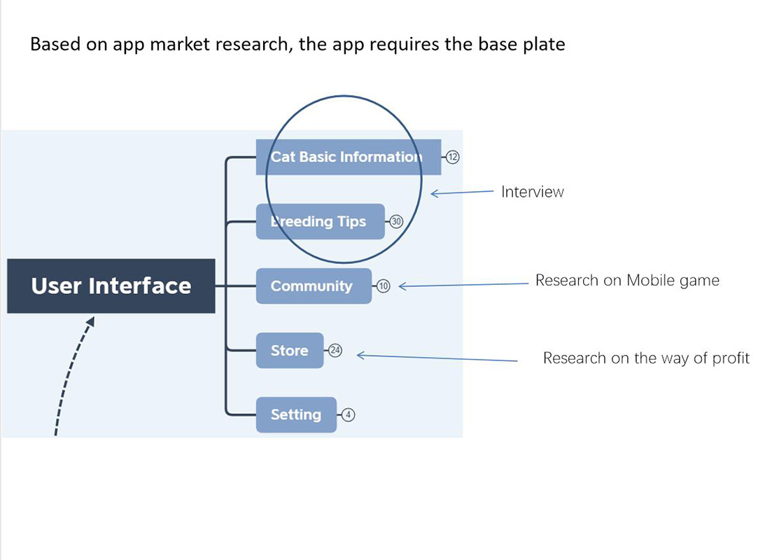 My third project was inspired by the epidemic which was happened in the early 2020. During this severe plague, a lot of foodservice industry has taken a hit. Many companies began to develop new products to survive. Except for human beings, pets have been suffering in this epidemic too, especially the outdoor pets. And there is always some discussion about pets’ security. I think pet business is a trend. So, what kind of pet is suitable to our life? What should we notice when we keep pets and how can we spread the knowledge to the owners? Based on these questions, I have my own subject <Research on App for Cat Novice>.