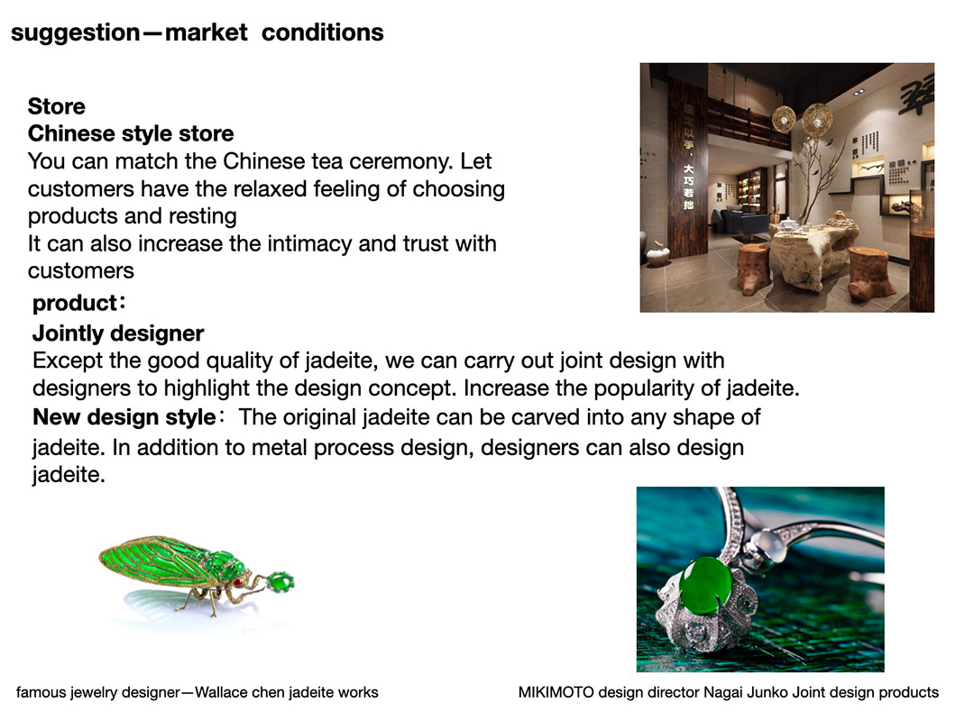 2013年全球經(jīng)濟碰到了平緩期。2020年冠狀病毒讓市場經(jīng)濟受到了嚴重的打擊。雖然二手奢侈品市場還是有成交量,但是這個成交量背后的含義不是經(jīng)濟的復蘇,反而或許是經(jīng)濟奔潰的預兆。翡翠成為了高價商品,但卻進入了無人購買的尷尬狀態(tài)。我做了市場調(diào)查、消費者和從業(yè)者的訪問,想去了解:他們怎么看待現(xiàn)在的翡翠市場?怎么看待產(chǎn)品的設計和價值?從業(yè)者的悲觀和消費者的熱情產(chǎn)生了矛盾。這是雙方對翡翠價值認知上的明顯區(qū)別。
