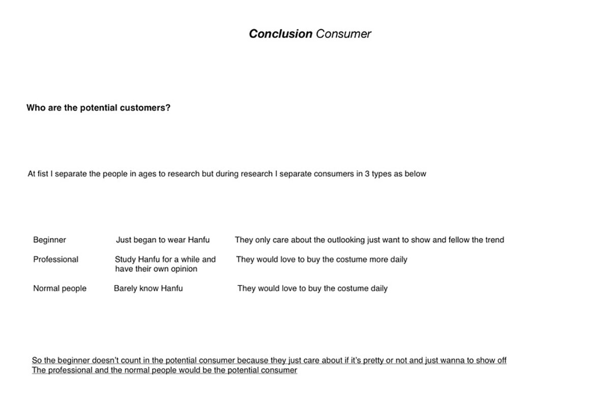 I combined the quantitative analysis method and the qualitative analysis method in my study. In the study of <Constant and changeable ballet shoes> and <Urban Autism>, I mainly focused on the qualitative analysis method, while in the study of <The research of Hanfu industry in Chinese market>, I mainly used the quantitative analysis method. The reason why I chose to study <The research of Hanfu industry in Chinese market> is that Hanfu is really popular in recent years. Meanwhile, Ziqi Li’s YouTube vlog has also brought Hanfu to the hottest topic in the world in 2019.