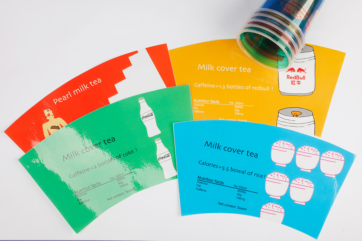 In the personal project, the related components and measurement units that are easy to be ignored in milk tea are expressed in intuitive visual language and can be quickly understood by consumers by comparing the ingredients in daily life.