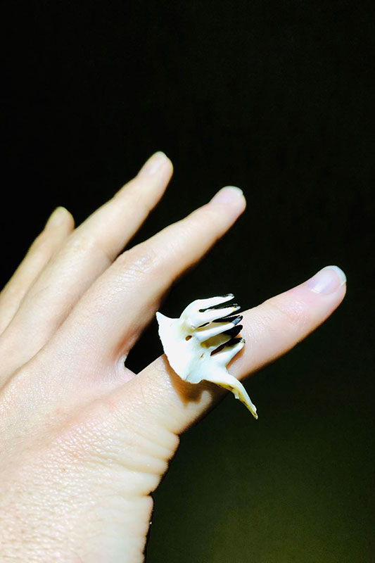 I try to explore and seek the abstract things in our metal world and use jewellery to display the introspection which can communicate with viewer. You can see that in two collections -- <Cyberpunk> and <Button> 。