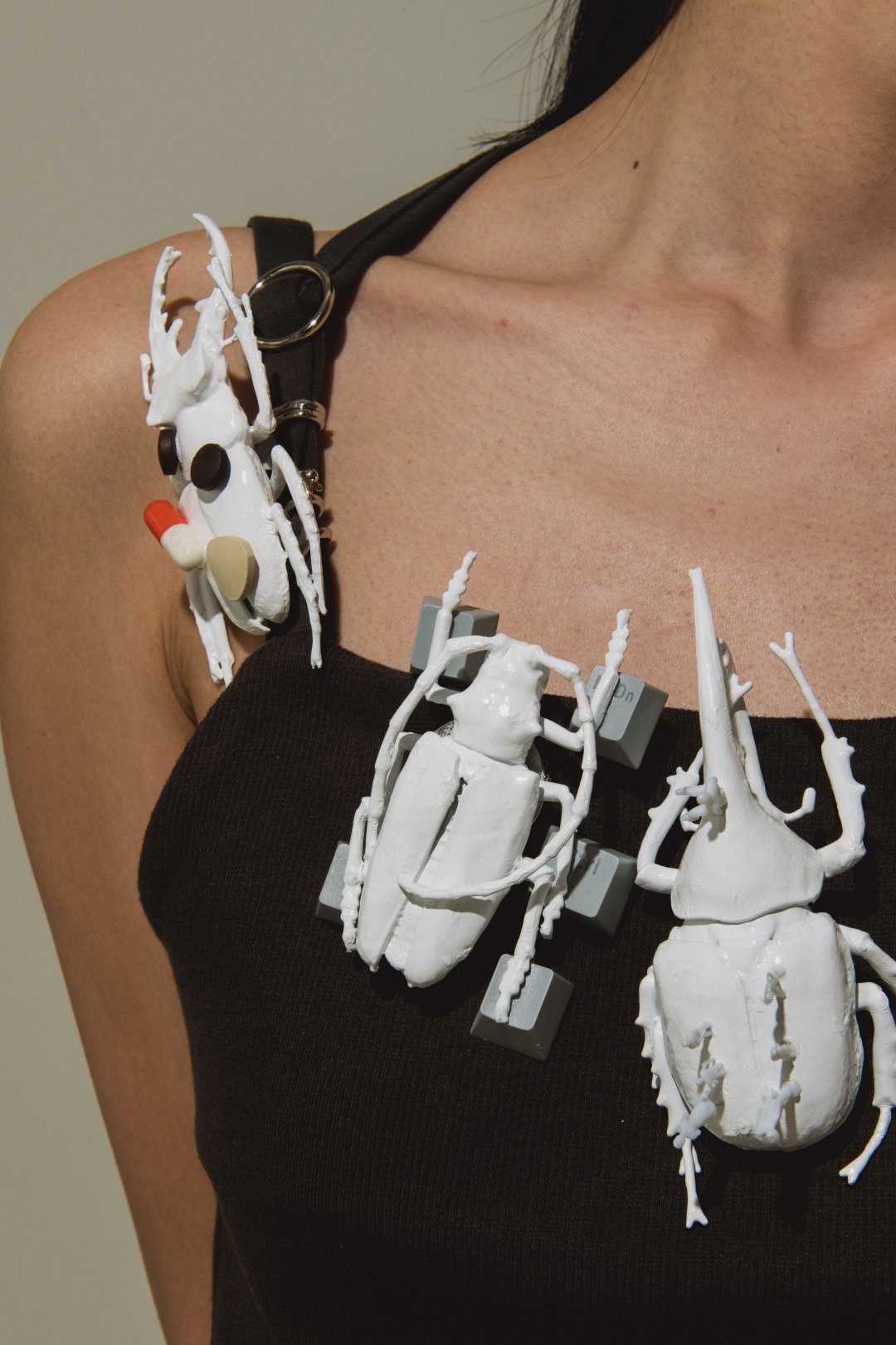 Colors are attractive to me so that I always want to highlight the color element in my jewelleries. In the work Blocks, Lines, Drops, I try to explore the combination between color and materials as acrylic paints are used to produce jewelleries. In the exploration of random paint state as well as the reflection of colors on the subconscious emotions, I’ve tasted the joy of creation.