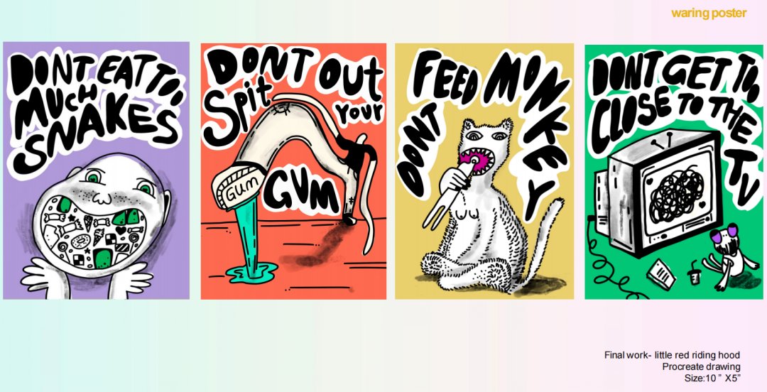 The most important work for me is the Warning Poster. My inspiration comes from social news, such as animal attacks on human beings, car racing, and car accidents. In the process of creation, I have collected many interesting or bloody social news. I hope my works can bring people more thinking so that they will not do stupid and harmful behaviors.