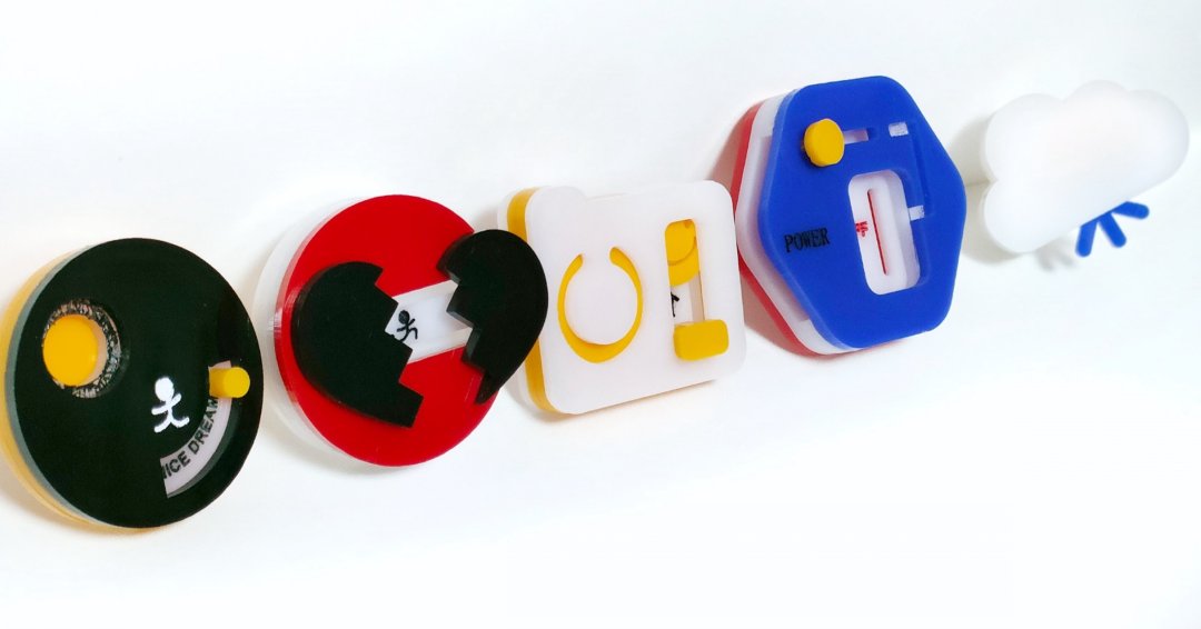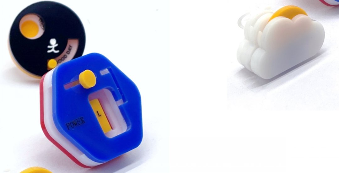 我喜歡觀察人與人,人與物之間的情感聯(lián)系,也對物品背后的故事以及象征意義很感興趣。在作品《一點鼓勵》中,我根據(jù)生活中一些不如意和傷感的情景,創(chuàng)作了一系列互動性首飾。通過分層疊加視覺元素和互動機關(guān)的設(shè)計,我表現(xiàn)了黑夜到白天,表情變化,相機快門等生活中的瞬間,。當(dāng)佩戴者推動或轉(zhuǎn)動機關(guān)時,場景將傳遞一些積極的信息,以鼓勵他們能有一個好心情去面對生活中的不如意。