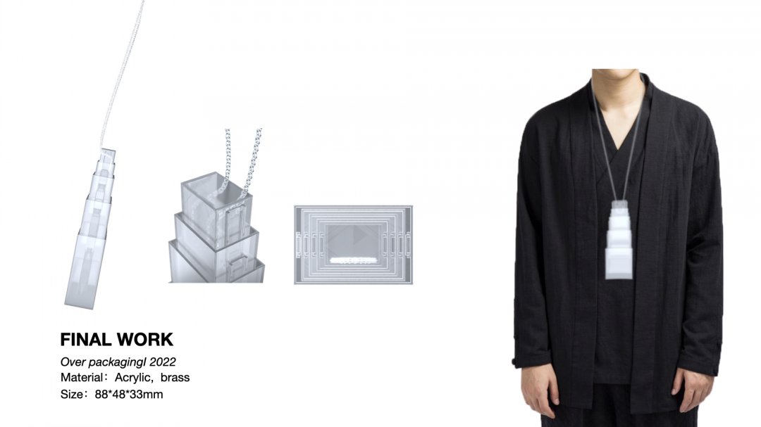 “Over Packaging II” Rendering Image Necklace Acrylic, Brass 70mm*80mm*40mm 過(guò)度包裝III 效果圖 項(xiàng)鏈 亞克力,黃銅 70毫米*80毫米*40毫米